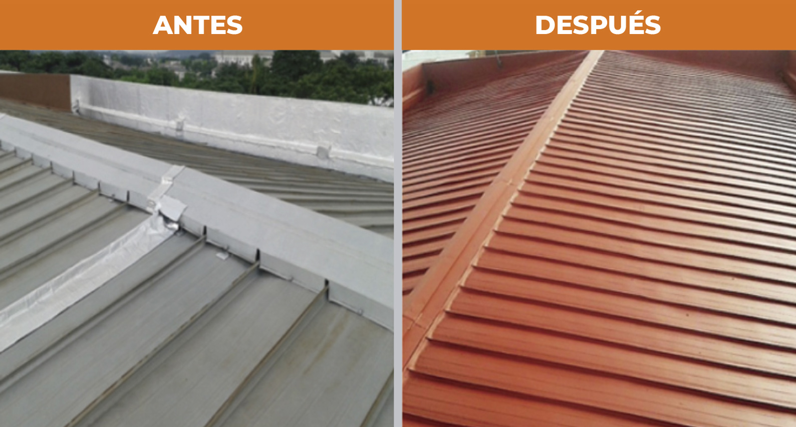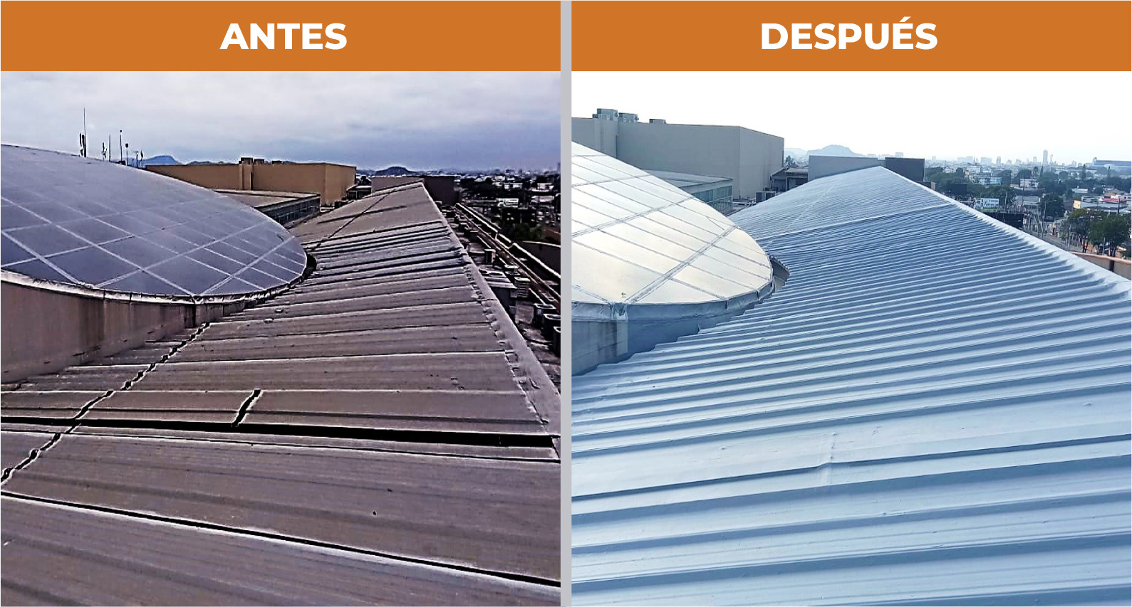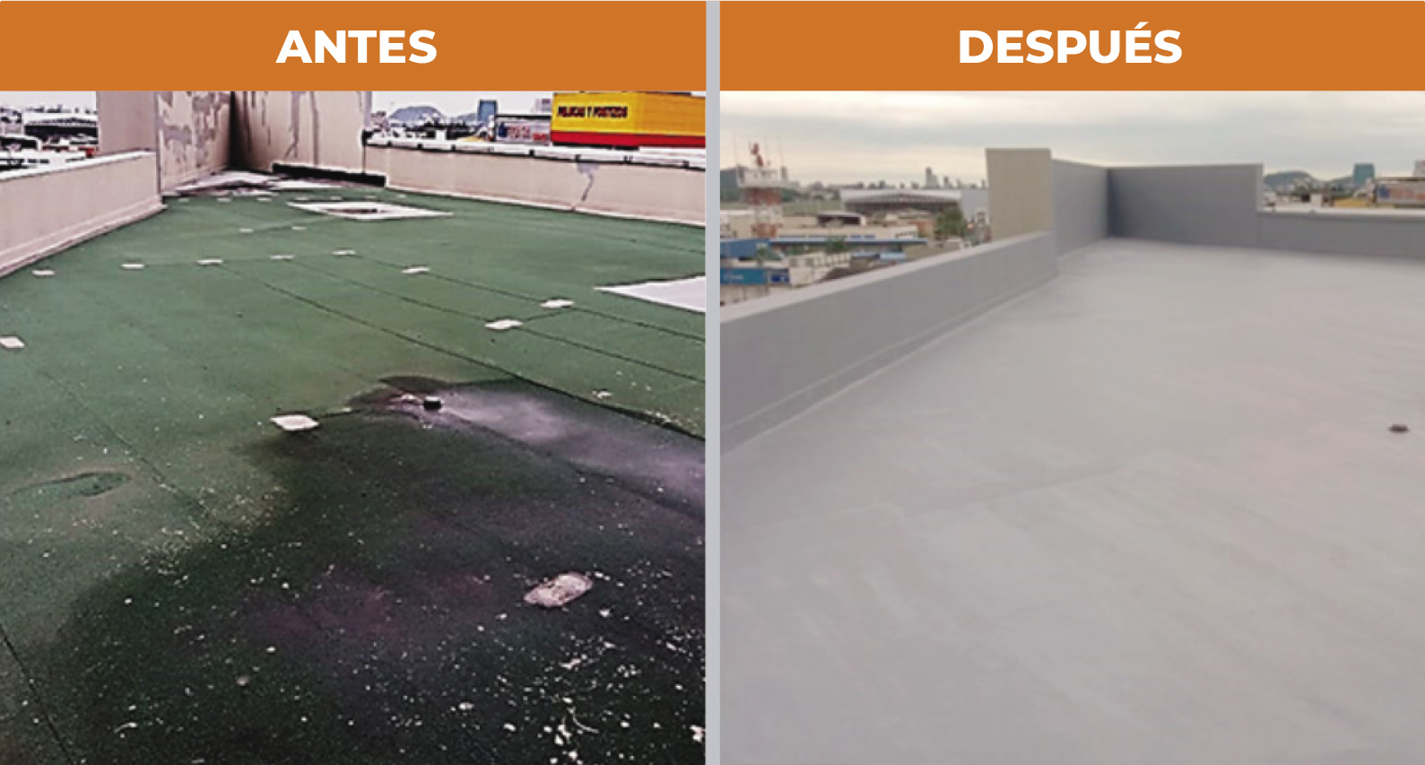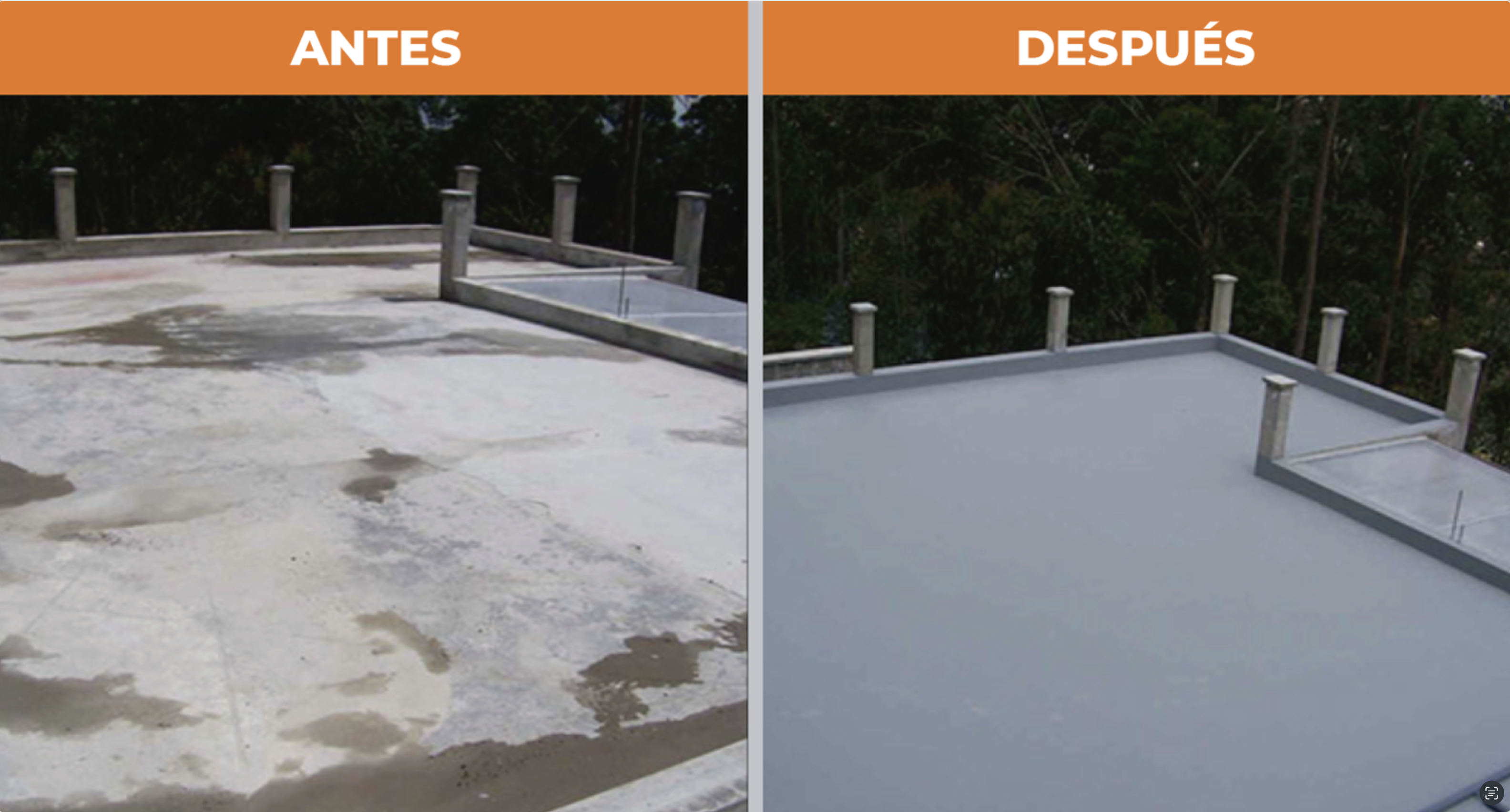 Nuestro sistema de impermeabilización y reparación de goteras y filtraciones se aplica en forma líquida y adopta eficientemente cualquier forma del techo o cubierta a recubrir.